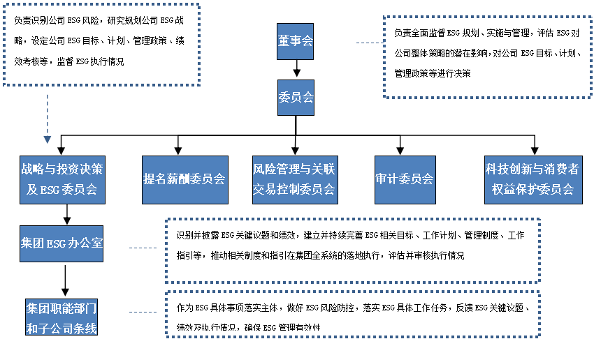 中國太保把環(huán)境、社會及公司治理(Environmental, Social and Governance,簡稱“ESG”)全面融入公司的經(jīng)營管理中,依據(jù)ESG報(bào)告指引重點(diǎn),識別ESG風(fēng)險(xiǎn),制定應(yīng)對策略,優(yōu)化運(yùn)營體制。在實(shí)施中考慮環(huán)境、社會及公司治理的影響,推動各個職能部門將相關(guān)指標(biāo)與要求整合融入其日常運(yùn)營中,推進(jìn)太保成為“行業(yè)健康穩(wěn)定發(fā)展的引領(lǐng)者”。