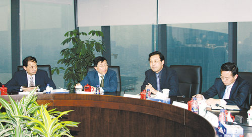 2008年10月29日,中國保監(jiān)會副主席楊明生、資金運用監(jiān)管部主任孫建勇等一行六人到
