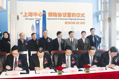 2008年12月26日,“上海中心”大廈保險(xiǎn)簽約儀式在上海中心大廈建設(shè)發(fā)展有限公司隆