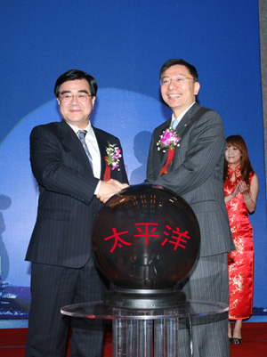 中國(guó)保監(jiān)會(huì)副主席周延禮(左)、中國(guó)太平洋保險(xiǎn)集團(tuán)董事長(zhǎng)高國(guó)富為中國(guó)太平洋保險(xiǎn)航運(yùn)保險(xiǎn)事業(yè)總部的成立揭牌。 2009年12月3日,由上海金融服務(wù)辦、上海保監(jiān)局、復(fù)旦大學(xué)、中國(guó)太平洋保險(xiǎn)共同舉辦的航運(yùn)保險(xiǎn)(上海)國(guó)際研討會(huì)在上海西郊賓館召開(kāi)。來(lái)自中國(guó)保監(jiān)會(huì)、上海市政府、上海金融辦、上海保監(jiān)局、上海市發(fā)改委、上海市建交委、上海市國(guó)稅、地稅局、上海市保險(xiǎn)行業(yè)協(xié)會(huì)、中國(guó)海事仲裁委員會(huì)上海分會(huì)、中國(guó)船級(jí)社上海分社、交通運(yùn)輸部、同業(yè)保險(xiǎn)公司、國(guó)際再保險(xiǎn)公司、銀行、公估行、律師、經(jīng)紀(jì)人、航運(yùn)機(jī)構(gòu)、高校、學(xué)術(shù)機(jī)構(gòu)及太平洋保險(xiǎn)等單位150余人參加了會(huì)議。