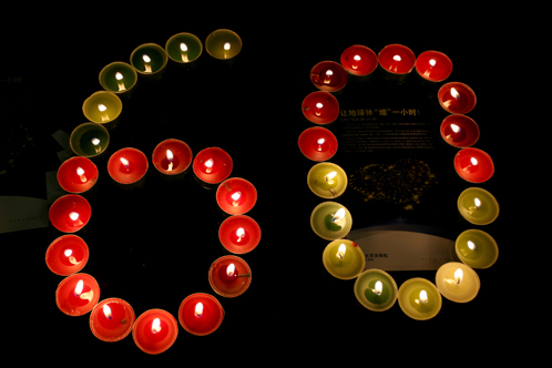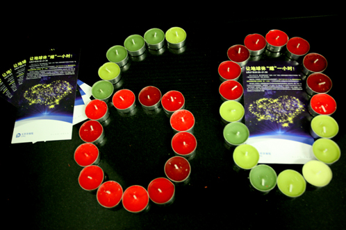 公司為“地球一小時”活動設計制作的宣傳單和購買的環(huán)保蠟燭。