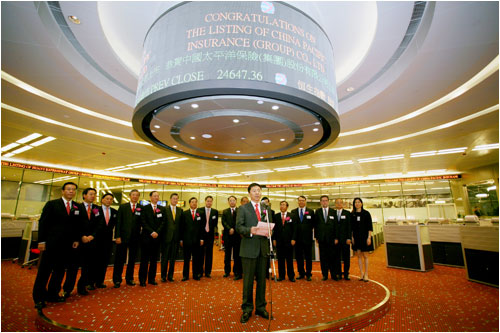 香港聯(lián)交所中國太保H股上市儀式現(xiàn)場