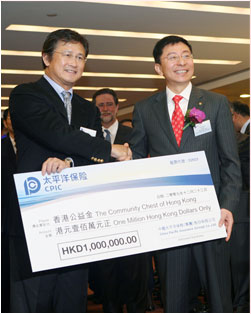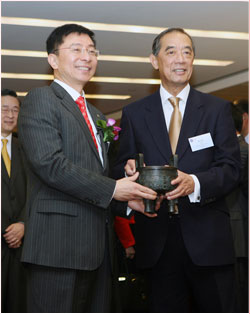 港聯(lián)交所主席夏佳理贈送上市紀(jì)念品——代表 港公益金捐贈100萬港幣,用于慈善事業(yè)。