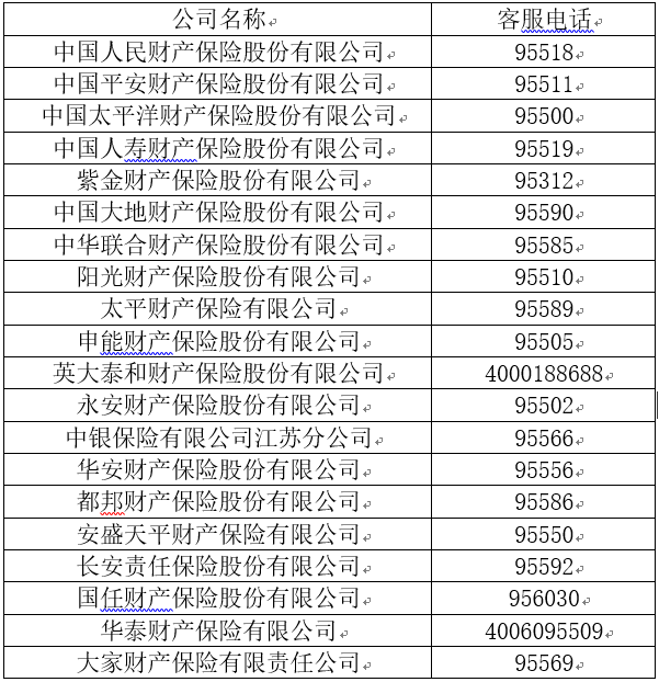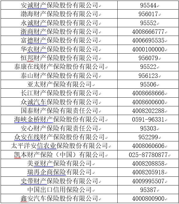 各財產(chǎn)保險公司客戶服務電話
