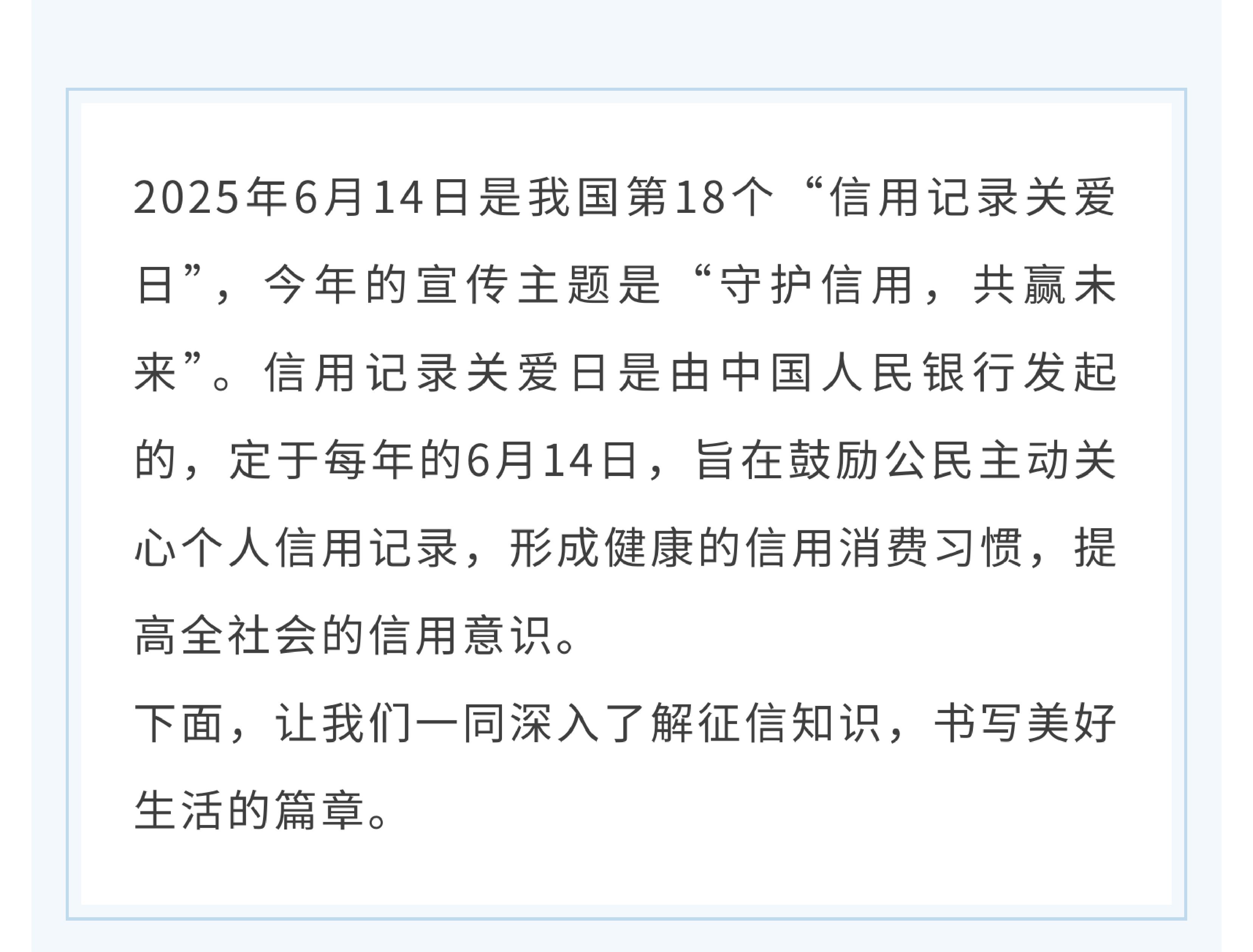 關(guān)愛征信丨守護信用,共贏未來——6·14信用記錄關(guān)愛日知識講堂