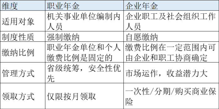 問題2:職業(yè)年金和企業(yè)年金的區(qū)別是什么?
