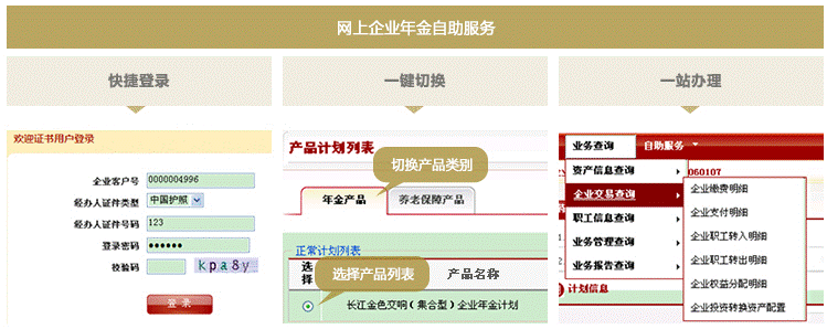 長江養(yǎng)老網上平臺是養(yǎng)老金行業(yè)內首家實現(xiàn)全天候服務與全業(yè)務覆蓋的電子商務平臺。平臺全面支持企業(yè)年金、養(yǎng)老保障等養(yǎng)老金業(yè)務的辦理與查詢,可一站式滿足企業(yè)包括繳費、領取、人員管理、資產查詢、報表查詢等在內的所有業(yè)務管理需求。目前平臺已服務企業(yè)數(shù)達6000多家,個人達80萬人,已累計辦理養(yǎng)老金業(yè)務60多萬筆,覆蓋了90%以上的企業(yè)年金客戶群,超過88%的網上業(yè)務辦理率為業(yè)內最高。長江養(yǎng)老網上平臺搭建了“金融服務民生”的橋梁,以顯著的優(yōu)勢為廣大客戶帶來一流的服務體驗: