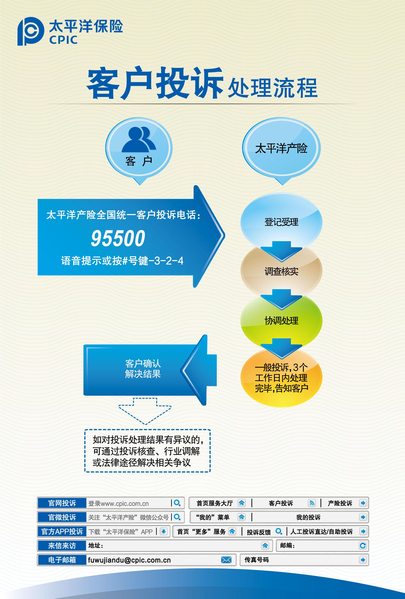 3.官微投訴:關(guān)注“太平洋產(chǎn)險(xiǎn)”微信公眾號(hào)>“我的”菜單>我的投訴